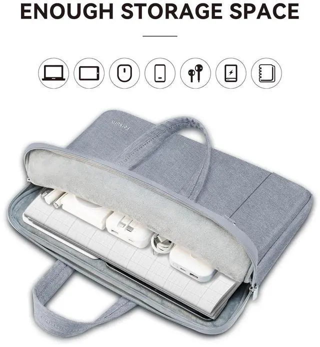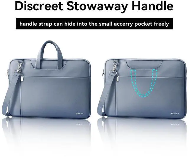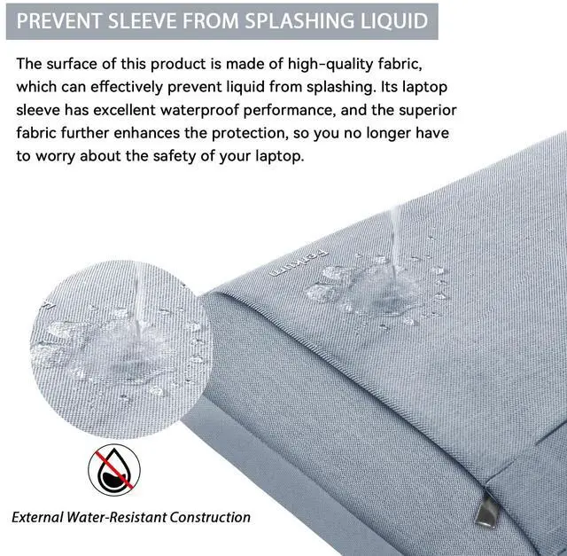 Internal dimensions: 16.9" x 12.4" x 1.1". Crafted from water-repellent polyester, this laptop bag ensures reliable protection against water and moisture. Its lightweight, slim, and soft design enhances safeguarding for your laptop while maintaining flexibility. Complemented by a detachable shoulder strap for versatile portability, this laptop bag is ideal for daily commutes or travel, combining practicality with modern aesthetics.