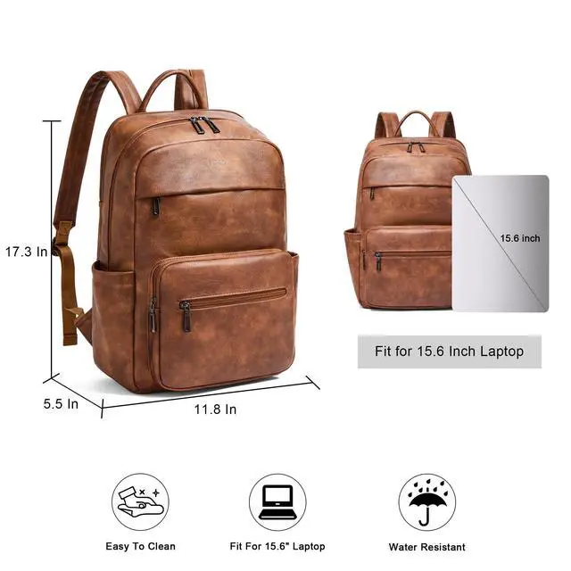 Capacity Travel Backpack: Large backpack Offers 12 functional pockets including a main compartment (with foam divider), inner zipper pocket, 2 slip pockets, Separate laptop sleeve(fits 15.6 inch laptop), 2 side pockets, 3 front zipper pockets, and a anti theft back pocket. Easily organizes A4 folders, documents, clothes, and daily essentials. ^^ Vegan Leather Backpack for