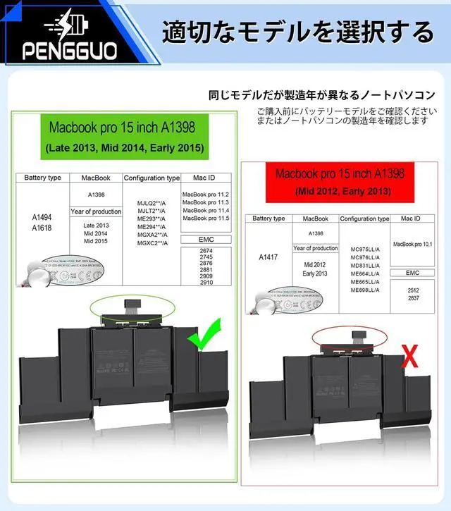 Fits for MacBook pro 15 inch a1398 battery: Battery ModelA1494 / A1618.