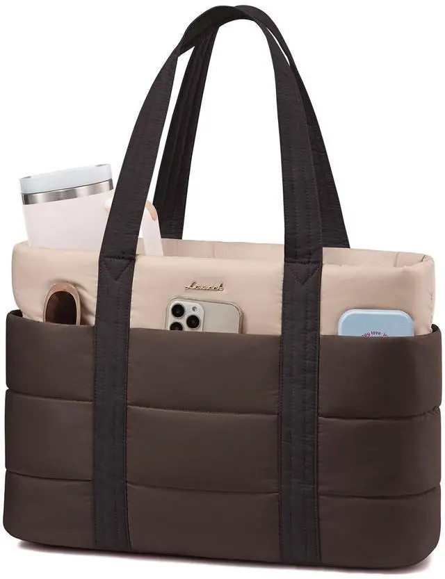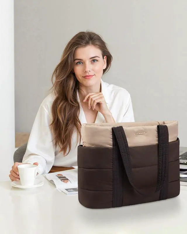 LOVEVOOK Tote Bag for Women, Large Puffer Work Tote Laptop Bag, Lightweight Travel Tote Bag with Zipper Gifts for Women