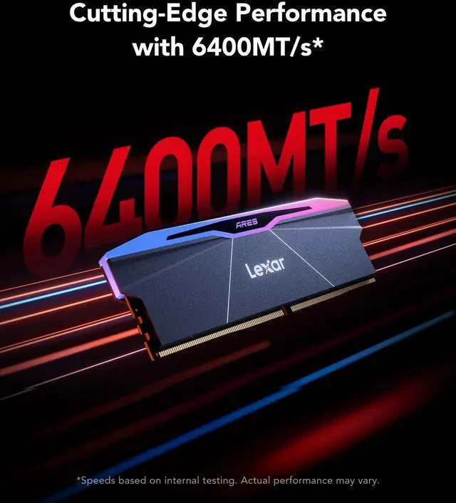 Elevate gaming experience, engineered for next-gen DDR5 performance, Lexar ARES Gen2 RGB DDR5 RAM illuminates gaming setups with vibrant RGB lighting through Lexar RGB Sync. ^^ Unleash the ultimate overclocked performance and designed to support Intel XMP 3.0 /AMD EXPO standards, Lexar ARES Gen2 RGB DDR5 desktop gaming memory's cutting-edge DRAM technology enables performance of 6400MT/s CL32 and delivers better stability and exclusive, customized PCB improves performance, overclocking. Backed by lifetime limited warranty. ^^ With advanced on-die ECC (Error Correction Code), Lexar ARES Gen2 RGB DDR5 internal memory ensures gaming adventures smooth and uninterrupted by improving overall stability and reliability.