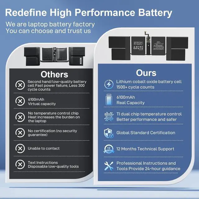 3. High Performance Electric Core, Real capacity can ensure the long operating time after charging full ^^ Why choice us 1. Exporting globally, National certification certificate available, 2. Provide professional installation guide--Professional engineer team, 3.12 Months After-sales service ^^ Compatible with Macbook pro 14 inch Macbook pro A2442 A2779 A2918 battery replacement.