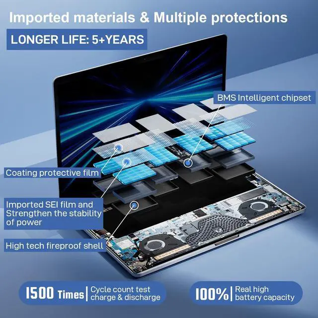 Battery Type: Li-Polymer. ^^ Battery Advantages 1. More than 1500+ recharge cycles over the life of the battery; 2.100 % Safe with Upgrade chip to ensure 6-fold protection, eg. Intelligent temperature control--Over heat protection, Over charging protection, Short circuit protection..... Without (swollen battery) Damage to laptop,