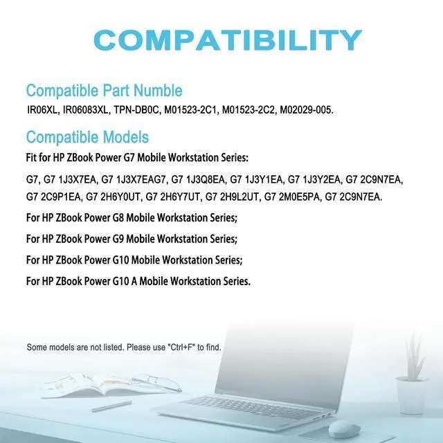 Condition: 100% brand new from manufacturer. ^^ Replacement Battery Part NumbersIR06XL, IR06083XL, TPN-DB0C, M01523-2C1, M01523-2C2, M02029-005. ^^ Compatible ModelFit for HP ZBook Power G7 Mobile Workstation Series: G7, G7 1J3X7EA, G7 1J3X7EAG7, G7 1J3Q8EAlG7, G7 1J3Y1EA, G7 1J3Y2EA, G7 2C9N7EA, G7 2C9P1EA, G7 2H6Y0UT, G7 2H6Y7UT, G7 2H9L2UT, G7 2M0E5PA, G7 2C9N7EA. For HP ZBook Power G8 Mobile Workstation Series; For HP ZBook Power G9 Mobile Workstation Series; For HP ZBook Power G10 Mobile Workstation Series; For HP ZBook Power G10 A Mobile Workstation Series. ^^ Security/QualityAll batteries are UL, CE, FCC, RoHS safety certification, built-in over charge, over discharge, over temperature, short circuit protection. The battery offers up to 1000 charge cycles and uses grade A battery cells to improve charging speed and battery performance, ensuring performance and durability. ^^ After-Sales SupportWe support 30 days refund, 12 months warranty (refund or replace battery), 24 x 7 mail support. return window will close one month after you receive the product and you can contact us by placing your order or by clicking " Ask a question" on the seller's page.