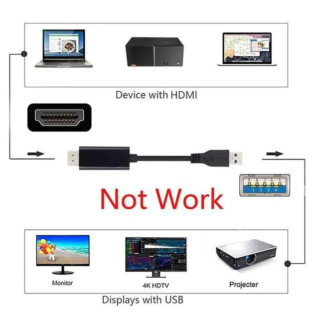 USB 3.0 Male to HDMI Male Cable USB 3.0 Source HDMI Sink Converter For Desktop Laptop PC Adapter 1.8 m 1080P Projector Video Monitor CableThe cable including USB 3.0 input, HDMI video output, USB 3.0 backward compatibility, extended mirrored display, HDMI output resolution (including 480P/576P/720P/1080P), multi screen function, etc. The cable support resolution 1080p@60hz max, Not work for 4K/8K. The cable not work for HDMI input to USB 3.0 output, it is not reversed cable. It is compatible with Windows XP/7 (32/64 bit)/8 (32/64 bit)/ 8.1 /Vista/10/11 and Mac OS.