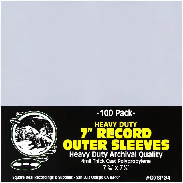 These archival quality sleeves are made of cast polypropylene, and are heavy duty 4mil thick! They are a great choice for protecting your precious record collection. No fold over flap at the top also allows for easier insertion and removal. Each sleeve measures 7-7/16" x 7-1/4" (or 189mm x 184mm) Archival Quality Cast Polypropylene Fits Single 7" Records Premium 4mil Thick Heavy Duty Flush Cut with Lip