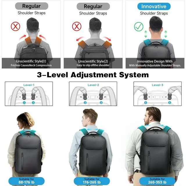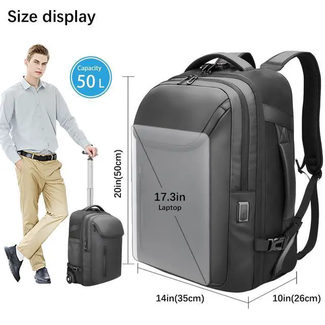 BUILT-IN SECURITY & CONVENIENCE: Packed with travel-smart features including a TSA-accepted lock for secure travel, dual USB charging ports (Type-A & Type-C) to power devices, and a durable YKK zipper, ensuring this business backpack is both reliable and functional ^^ ERGONOMIC COMFORT FOR DAILY USE Designed for all-day comfort, this large rolling backpack features adjustable, breathable shoulder straps, a supportive 3D back pad, and feature a 3-level adjustment system for ergonomic support to distribute weight, ideal as a mens backpack for work or a womens backpack for work ^^