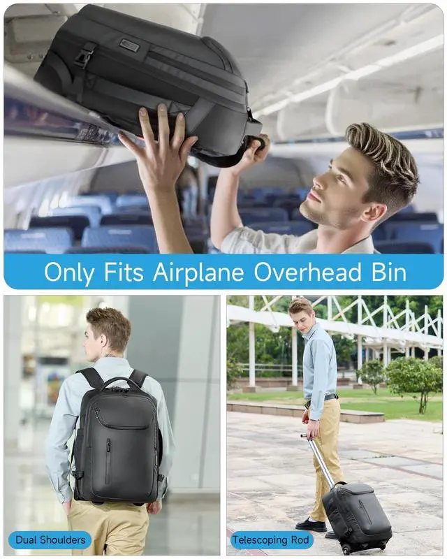 CONVERTIBLE & FLIGHT-READY: Seamlessly switch between a roller bag, a carry-on backpack with wheels, or a sleek personal item. Its compliant size (14"x10"x20") fits overhead bins (Not suitable for placement under airplane seats), making it the ultimate rolling backpack for adults and a perfect work backpack for frequent flyers ^^