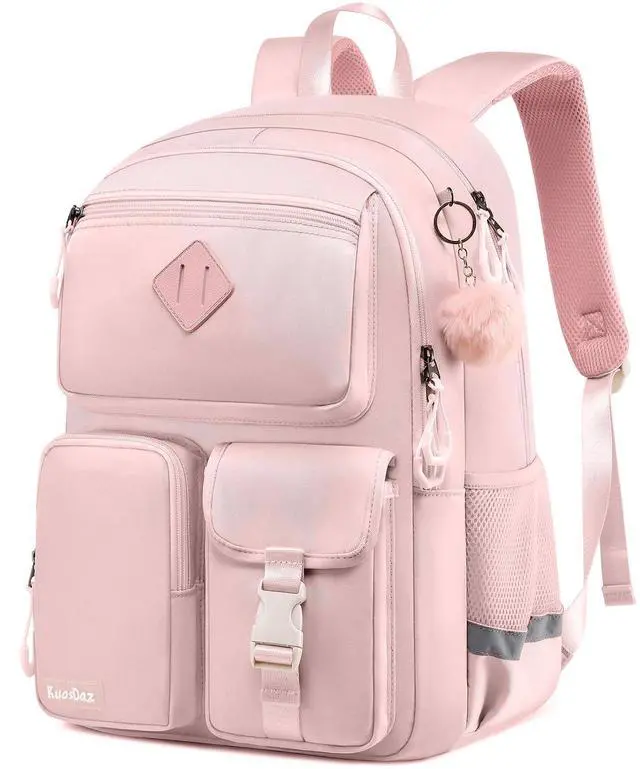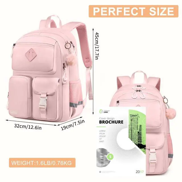 ^^ Multi Pocket: Backpack for school includes 1 main pocket, 2 small inner pockets (for storing small items), as well as a protective compartment for storing files or laptops, 4 external front pockets, 1 hidden zippered back pocket, and 2 side pockets for placing water bottles. This cute middle school girls' backpack features a multi compartment design and comes with a plush ball pendant as a gift, adding practicality and fashion to it. ^^ Waterproof Material &