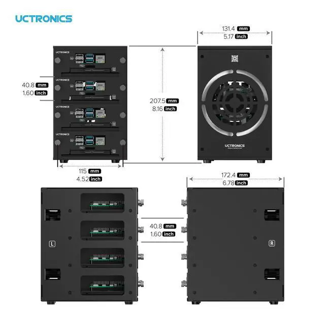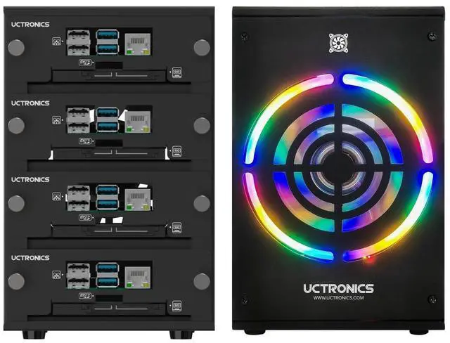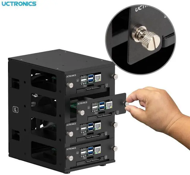 Note: This fan is not a PWM fan, can not control the air speed and temperature. ^^ Front pull-out, easy to replace one of unit, easy access to the RPi's I/O ports and SD card. ^^ The mounting plate also has a reserved SD card slot, so you can access and replace the SD card from the front side simply by using the