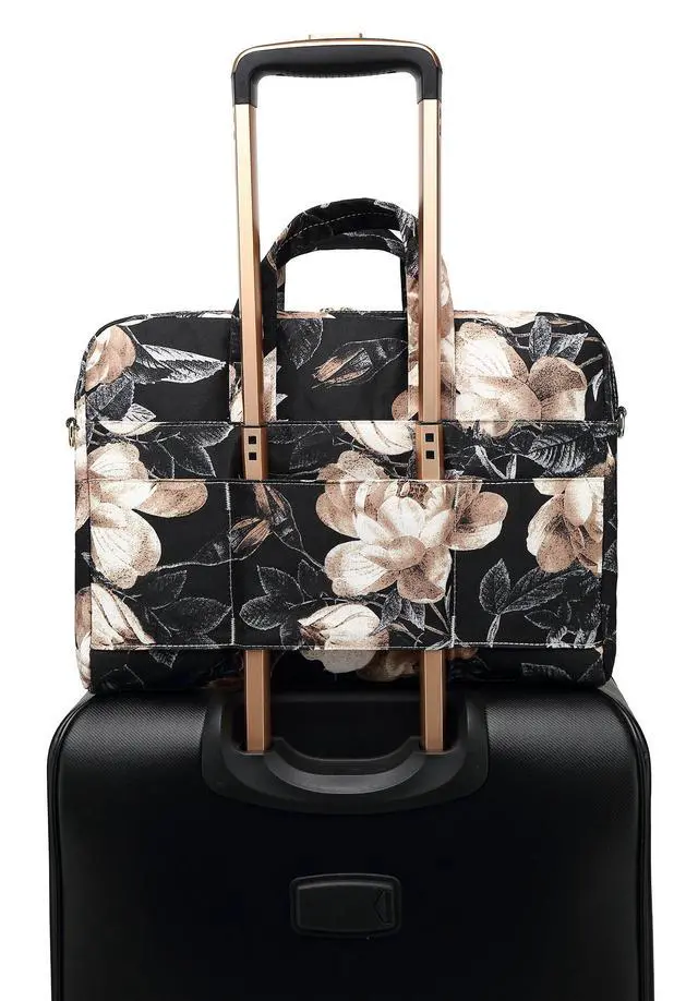 DACHEE Beige Rose Patten Waterproof Shoulder Messenger Bag Sleeve for 14 Inch 15 Inch Laptop Case Briefcase 15.6 Inch