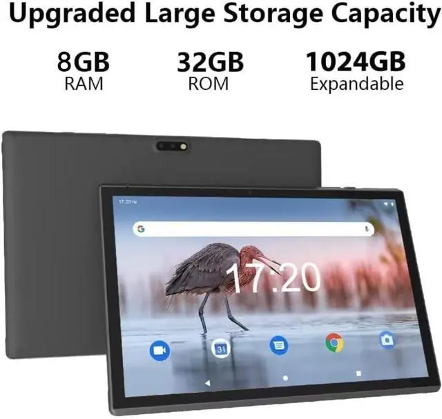 portable entertainmentZZB ZB10 10" HD display tablet PC, USB Type C Port, 32GB storage and support 1024GB microSD card, 8GB RAM (Including 5GB of expandable memory), Keep all your favorite music, photos or videos, plays videos more smoothly. and enables an impressive gaming and multimedia experience. This 10.1 inch tablet will effortlessly provide you with up to 8-12 hours of support for reading, browsing, watching movies and playing games (Battery life will vary based on device settings and Apps usage). The 10IN tablet computer uses a 1280*800 full HD IPS display with vivid colors and improved viewing angle, so you can watch your favorite movies and shows without missing a detail.