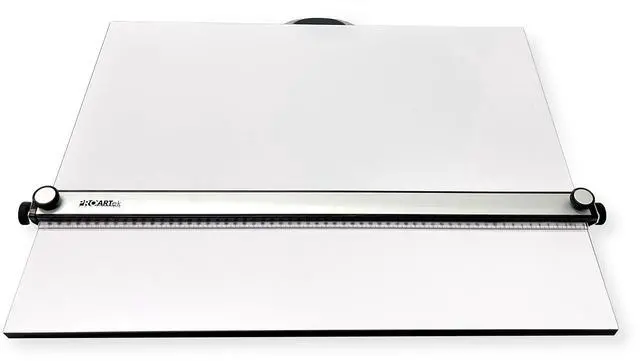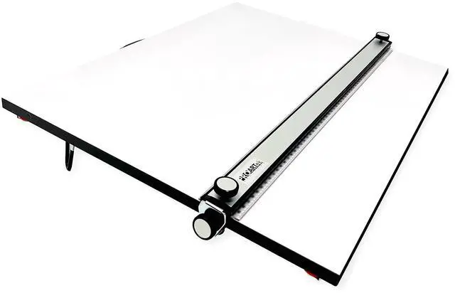 PXB Series 18 x 24 inches Portable Drawing Board with Aluminum Parallel Straightedge. Architecture Tool for Students and Professionals. ^^ Durable Particle Board Substrate. Smooth Warp-free White Melamine Laminated Board with Ergonomic Carry Handle for Convenient Portability. Rubber Grip Tracks Underside the Board. Folding Metal Legs with Rubber dipped ends. ^^ Straightedge Top-Mounted Adjustment Knobs and Brake Knobs on Each End for Secure, Positive Locking in Any Location on the Board ^^ Crystal Clear 0.12 Acrylic Blade with Inking Edges, 3/16 Clearance and Measurements in Inches and Centimeters ^^ Ships Fully Assembled and Double Boxed.