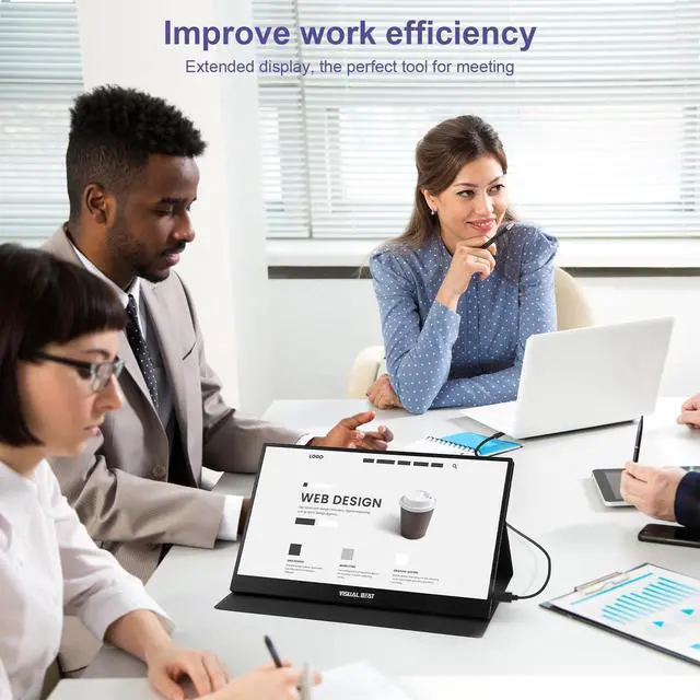 VESA Support]: Equipped with a durable and stylish smart cover and VESA mounting support (75*75MM), offering various options for desktop arrangement, effortlessly creating a multifunctional workspace. ^^ [Lightweight and Portable] With portability in mind, VISUAL BEAT has crafted a lightweight and easily transportable screen. At 15.6 inches, it weighs only 1.3 lbs ( 1.95 lbs with the smart cover) and measures just 0.4 inches in thickness. Easily slip it into your backpack to reduce your travel burden.