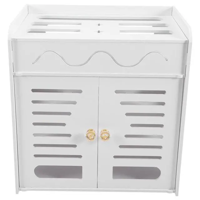 HOME ACCESSORIES-- This router organizer fits almost all sizes of power strips and provides extra space for wires, adapters, and more. ^^ CABLE ORGANIZER BOX-- Can accommodate most of routers, router storage box, do not block the signal, refuse to be messy. ^^ WALL MOUNT ROUTER RACK-- Manufactured with good materials which is premium and practical, durable for long lasting use. ^^ CHARGING CABLE ORGANIZER-- Exquisite design, with a hollow appearance, fresh and practical, can play a good decorative effect. ^^ 4 LAYER ROUTER BOX-- WiFi Router Storage Box Router Storage Box Enables You to Hide The Router Anywhere You Want and Makes It Possible for You to Keep Cables Hided.