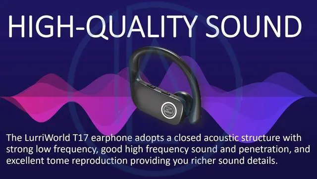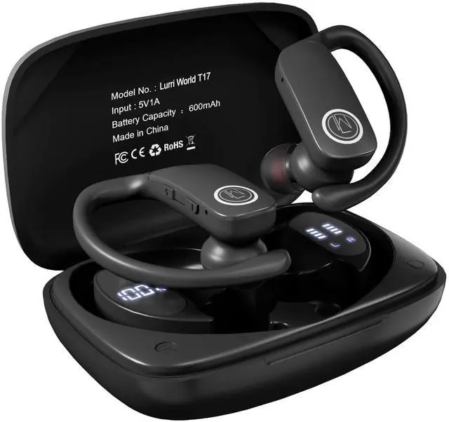 Introducing the Lurri World True Wireless Sport Headset - Your Ultimate Music & Phone Call Companion! Lurri World True Wireless (TWS) sport headset Model-T17 with LED battery indicator is designed ergonomically with an ear hook ideal for variuous hands-free activities. Enjoy the exceptional Hi-Fi stereo sound quality featuring rich bass and impeccably clear treble. Utilize the multi-functional press button control including additional volume adjustment buttons. The charging case is equipped with a 600mAh battery capable of recharging the earbuds six times on a single charge. Designed to be sweatproof and boasting IPX5 water resistance.