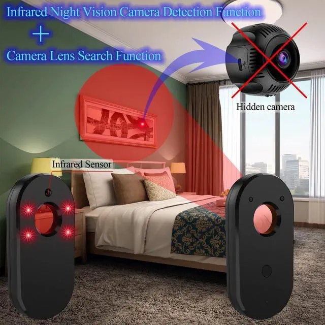 Upgraded Camera Detector with Simple Operation This upgraded camera detector & camera finder eliminates complicated buttons and confusing settings. With precise scanning performance, it helps identify hidden cameras, magnetic car trackers, recording devices, and other suspicious electronicsmaking privacy checks faster, easier, and more reliable. ^^ Multiple Detection Modes for Full Coverage Featuring multiple detection modes, this hidden device detector provides comprehensive scanning to ensure no hidden cameras, bugs, or trackers are missedeven in corners or hard-to-reach areas. Designed as a professional privacy protection tool, it enhances personal security in unfamiliar or sensitive environments.