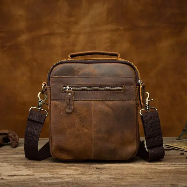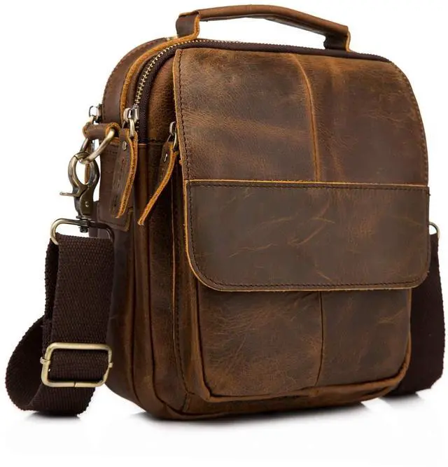 Le'aokuu Mens Crazy Horse Leather Cross Body Messenger Shoulder Satchel Daily Bag For 8" Tablets