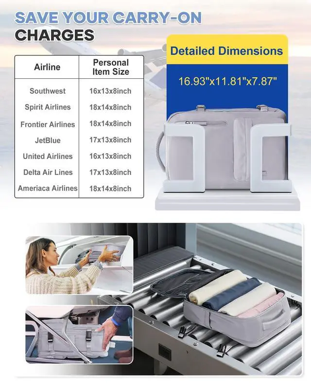 A separate shoe compartment can help you carry and keep your shoes better in your travel bag. ^^ Applicable ScenariosWhen you are on daily commute, you can easily organize your computer and files; when you are on outdoor adventure, the waterproof and breathable design can cope with bad weather. Whether you are traveling in the city or exploring in nature, it is the ideal choice for you. ^^ Professional Sleek LookStreamlined silhouette with clean lines and subtle branding, designed to complement business attire while maintaining functionality. The understated elegance transitions seamlessly from airport to boardroom, with a structured shape that keeps its form even when packed full.