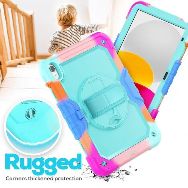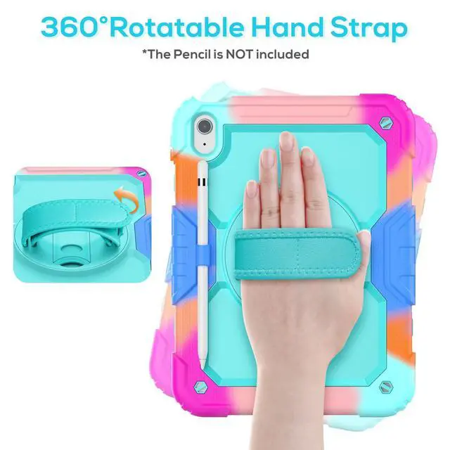 Hand Strap: Rotatable kickstand allows multi-angle viewing, pretty easy for movie watching and kids boys girls toddlers learning on the go. Soft rotating handle strap prevents falling of iPad 9th generation, featuring convenient use for teachers, students, waiters, doctors, nurses and conference presenters ^^ The removable shoulder strap lets you attach it to any of the two corner holes of the iPad 10th generation case, making it easy to sling over your shoulder on your commute. Perfect for hiking trips where you can quickly grab iPad to snap a photo. Its portable design is perfect for kids on walks and trips, and for students at school.