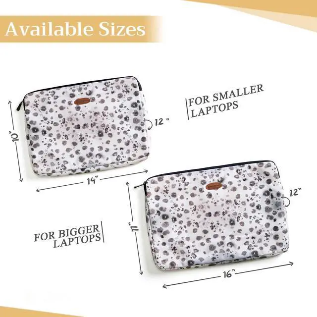 Artsy Designs and Vibrant patterns in vibrant colors provide huge visual interest, setting our bags apart. It is a versatile choice for just daily use, travel or commuting and a true delight to carry around. ^^ Comes in two sizes o Small 14 Width, 10 Length, 1.2 Deep (Outer dimension) Compatible with 12- 13.3 Laptops / Ultrabooks, 13- 13.5 Laptops / Notebooks / Ultabooks. o Large 16 Width, 11 Length, 1.2 Deep (Outer dimension) Compatible with 15 Macbook air / Macbook pro, 15.3 ipad pro and most 14- 14.56 Laptops / Notebooks / Ultrabooks.