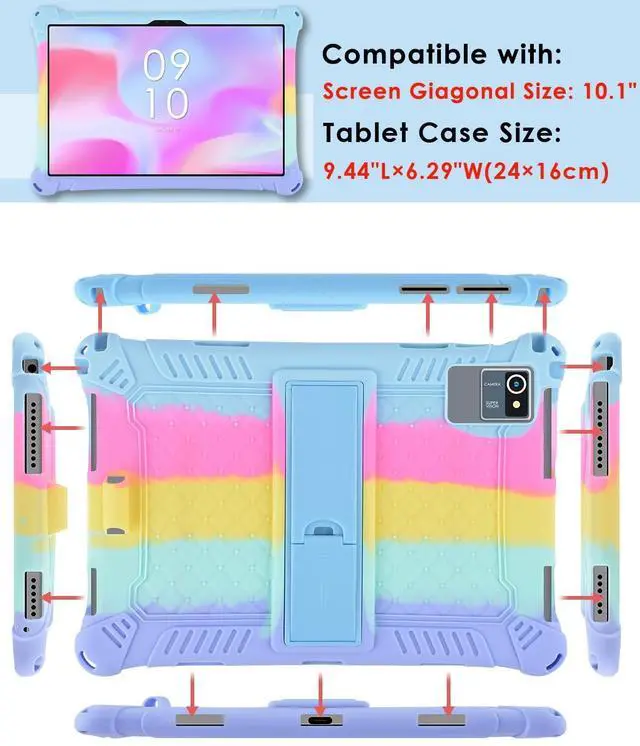 Tablet: Hoozo 10.1 inch case is made of high quality silicone. It is soft and durable, with good wear-resistant and anti-yellowing. The raised edge protects the tablet camera perfectly. Thickened corners are designed to protect the tablet from damage due to drops or bumps ^^