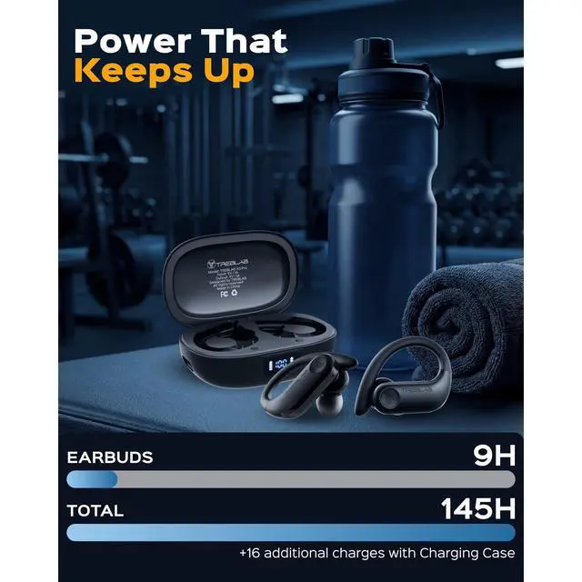 Dynamic Drivers: Designed for active use, these bluetooth earbuds feature powerful 14.2 mm drivers that deliver deep bass, clear mids, and crisp highs. Ideal as sport earbuds, workout headphones, or earbuds with bass for music, podcasts, and training sessions. Enjoy distortion-free sound whether youre lifting, running, or commuting. ^^ Secure Earhook Design That Wont Fall Out: Built for movement, these earbuds with ear hooks stay firmly in place during intense workouts. The ergonomic wrap-around design makes them ideal over the ear earbuds, running headphones, and workout earbuds that dont fall out. Includes 5 sizes of ear tips for a secure, comfortable fit suitable for long gym sessions and outdoor runs. ^^ IPX5 Sweatproof Sport Earbuds for