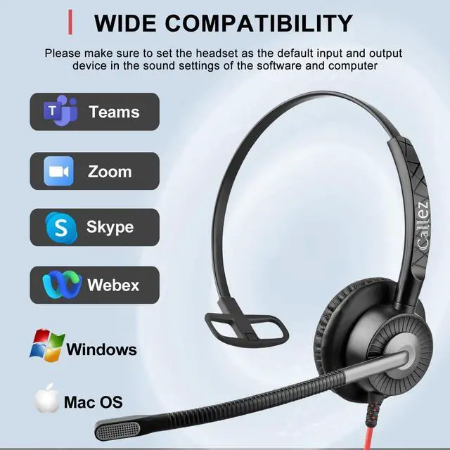 Kindly Notes: Please make sure to set the headset as the default input and output device in the sound settings of the computer ^^ All-day Wearing Comfort & 2-Year WarrantyCallez 700TA Headset only weights about 2 oz. The 6.56 ft (2m) cable let you move freely. Adjustable headband, skin-friendly material, soft memory foam, and the ergonomic ear-fitting design allow you to enjoy comfort for extended periods of use, whether for work or leisure. We offer 45 days money-back & 24 months warranty.