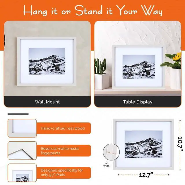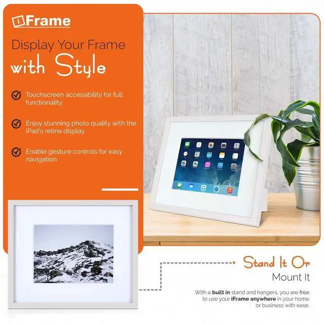 : iFrame turns any iPad / tablet into a decorative digital photo frame. A perfect iPad stand for desk, or wall mount. Classic design. Super functional. Handmade in the U. S. A ^^.,: Tested to work beautifully with iPad 1, 2, 3, 4, Air, Air 2, Pro 9.7 and newest iPad