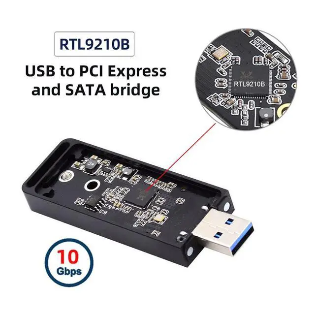 Not work for M-key AHCI SSD. ^^ USB 3.0 to M. 2 (NGFF) NVME/SATA Storage adapter, providing one USB 3.0 connector on the host connection and one 67pin B key M. 2 connector on the SSD storage devices connections. ^^ Work for M-key NVME and B/M-key SATA SSD with 2230/2242 size. ^^ The NGFF SSD is not included. ^^ The item included one PCBA (RTL9210B Chipset) and Case.