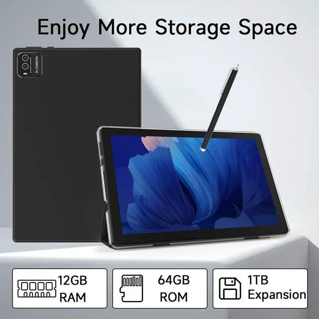 6000mAh large battery, long-lasting endurance Say goodbye to frequent charging! Ultra long battery life supports all day use, worry free for business trips and outdoor entertainment. 5G+Wi Fi 6, high-speed networking Dual mode high-speed network, zero latency for downloading, watching movies, and playing games, allowing you to enjoy high-speed network anytime, anywhere. Large storage+expandable, massive space Is 64GB of built-in storage not enough? Supports SD card expansion up to 1TB, allowing for easy storage of photos, movies, and documents! Value package, buy and use now Tableta comes with a high-end protective case and stylus, anti drop and anti scratch, more accurate writing and painting, enjoy a complete experience right out of the box! Whether it's work, study, or entertainment, this tablet can meet your needs!