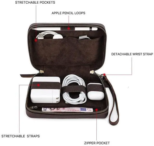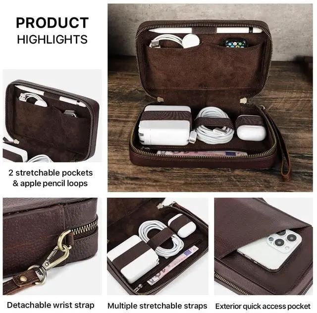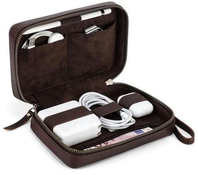 Contact vintage premium travel zipper case with detachable wrislet make it easy to carry and put into backpack, handbags or luggage ^^ Wrist Strap Travel Clutch - Genuine leather tech bag is a good choice for vacation, business trip, travel, showing your perfect pursuit of life and a gentleman taste. Travel cable bag brown can be a gife for father, husband, friend on Valentine's Day, Father's Day, Thanksgiving, Christmas ^^ Tech accessory is a gift for father, husband, brother, son, famliy on Valentine's Day, Fathers Day, Thanksgiving, Christmas, New Year