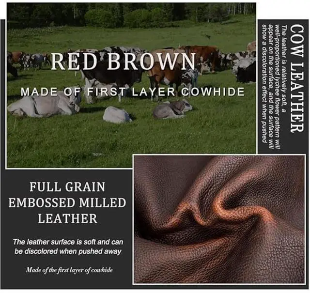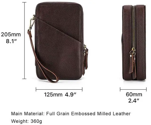 Made of Full-grain cowhide, has a rich feel, soft and durable. Due to the special oils and waxes used in the tanning process, when the leather is pull-up, there will be a discoloration effect on the surface but it will disappear immediately ^^ Capacity - Mens travel pouch has 3 elastic bands, 2 slip pockets, 1 zipper pocket and 1 pen loop can organized your travel electronic accessories, such as chargers, USB cables, cash, earphones pencil or pen. 1 front pocket can hold cell phone or passport or boarding pass ^^ Dimensions - 8.1"L x 4.9"W x 2.4"D.
