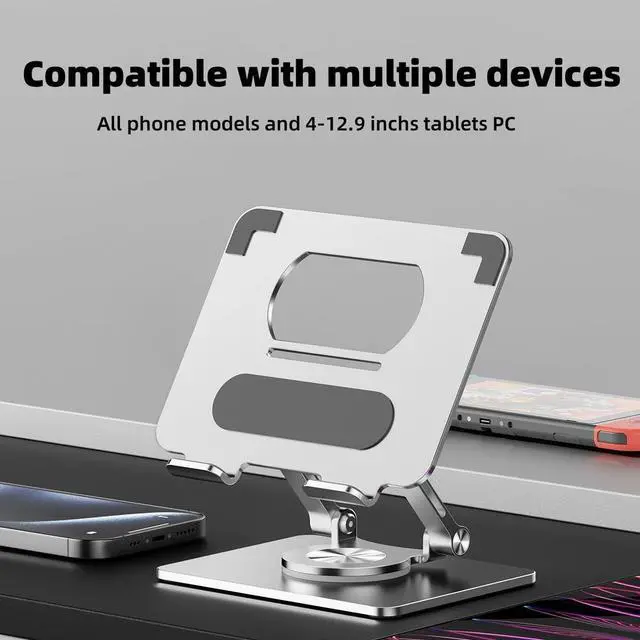 Compatible With 4-13" iPad/Tablet/Monitor: This Tablet holder stand for office desk perfectly works with e-readers/tablets/iPad up to 12.9 inches, such as iPad Pro 11, iPad Air, iPad, iPad min 7, Samsung Galaxy Tabs, Surface, Surface Pro, Kindle Fire HD, portable monitor, drawing tablet. You can liberate your hands when having video conference, watching video, online education ^^ Portable & Foldable, Take