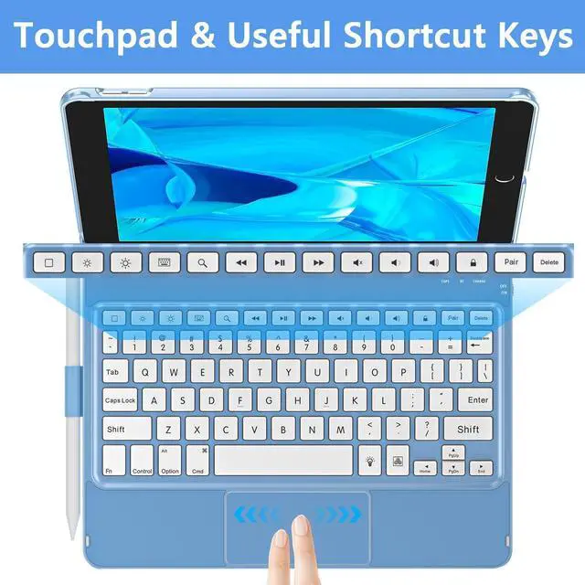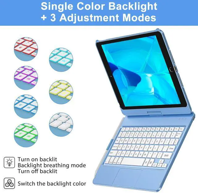 Trackpad Keyboard: For iPad 9th/8th/7th generation keyboard case with touch features laptop-like isometric keys, shortcut keys and built-in touchpad. When you have our keyboard for iPad 9th generation, you can browse the web, edit documents and build presentations at a faster speed by iPad 9th generation keyboard. Save 80% of your working time and increase your productivity by 90% ^^ 7 color