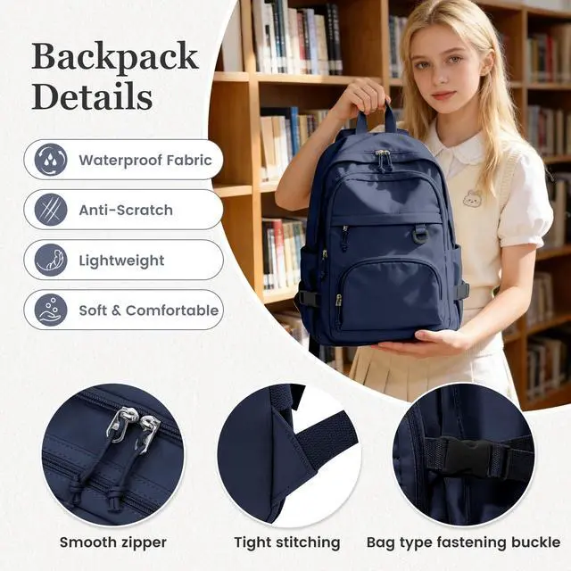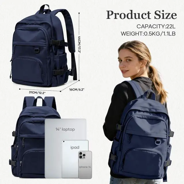 ^^ COMFORT & CONVENIENCEThis backpack is ergonomically designed. The adjustable padded shoulder straps are very comfortable and will not put too much burden on your shoulders even when you carry it for a long time. ^^ Applicable OccasionsThis backpack can carry everything you need in your daily life. Such as going to school, going out, working out, camping, biking, traveling, shopping and so on. This casual backpack is your best choice. ^^ College Student Backpack SizeThe backpack measures 13.38 x 18.5 x 6.69" (W*H*D), Weight: 1.49LB. The backpack is available in six colors.