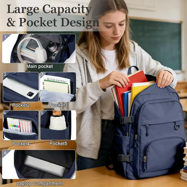 QUALITY FABRICMade of high quality waterproof nylon fabric, durable and easy to clean. Casual backpack with high quality SBS zippers, the two-way zipper is made of high quality metal, smooth to use and ensure long-lasting use. ^^ EXTRA LARGE CAPACITY This backpack offers plenty of storage space, perfect for everyday use. The backpack has four pockets of varying sizes to keep your laptop, iPad, mobile power, camera, books, and anything else you need to keep your belongings organized. In addition, there is a separate computer compartment in the main pocket that can hold up to a 15.6 -inch laptop.