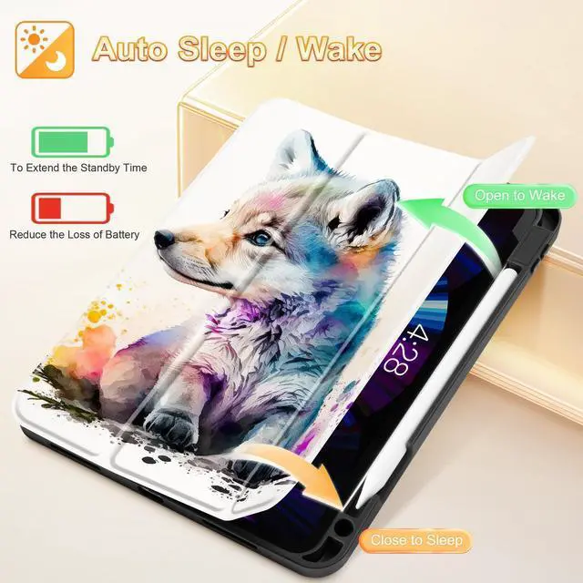 Gen Model: (A1980/A2013/A1934/A1979), NOT compatible with any other devices, Please kindly check the model number Axxxx on the bottom of iPad before purchasing. ^^ Premium MaterialMade of Premium PU exterior and soft TPU back cover, 360 fully protect your iPad against shocks, drops and impacts. Soft microfiber lining prevents your tablet screen from scratches. ^^ Convenient FunctionThe trifold stand design can easily change the angle to meet your viewing and typing needs. 65 video mode can act as a screen stand; 30 input mode acts as a keyboard stand. ^^ Auto Sleep/WakeBuilt-in magnetic strip, automatically wakes or puts your tablet to sleep when the lid is opened and closed. Protects and extends battery life. Powerful built-in magnets ensure a strong lock between the case & iPad. ^^ Pencil HolderDesign with pencil holder, easily to pull out and store your pencil, Support 2nd gen Apple Pencil wireless charging and Precise cutouts easily access to all buttons. pencil NOT included