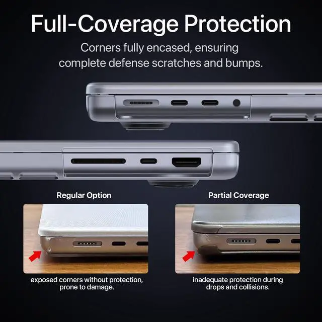 Last: Due to the multidirectional stress and stress-concentration at the corners, cheap cases on the market often crack spontaneously within 1-2 months. To address this common issue, soonjet has upgraded to a composite PC material with 200% enhanced hardness, providing long-lasting scratch resistance and slim protection ^^ Precise Cutouts, Seamless