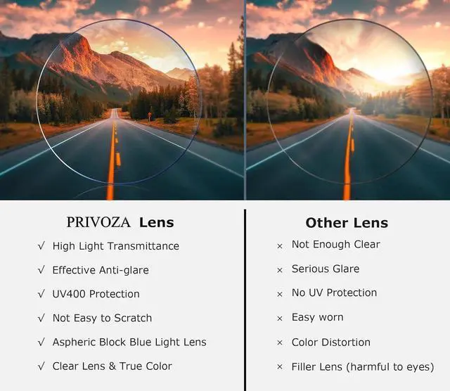Comfortable to wearPRIVOZA retro metal aviator frame with acetate temple tips provides a comfortable fit for men and women. The lightweight, durable frame features adjustable nose pads, ensuring long-lasting comfort without pressure on the skin. ^^ Blue Light Blocking GlassesPRIVOZA bluelight glasses can Protect your eyes from harmful blue light when you watch TV, look at computer, tablet, smartphone or other electronic devices.