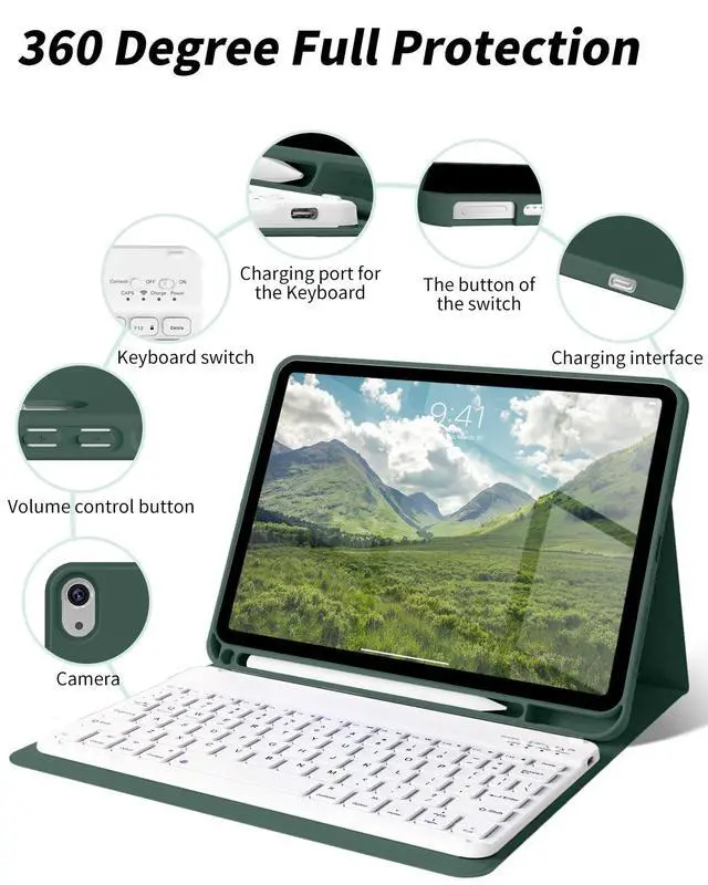Note: It will not be compatible other model. Please check your iPad model before purchase ^^ Detachable Bluetooth KeyboardDetachable Bluetooth keyboard with magnetic case, instantly becomes a portable laptop, easy to install and remove, built-in rechargeable battery, no need to replace the battery, Type-C charging cable It can be fully charged in 2 hours, work for at least 230 hours, stand by for 90 days, making it more convenient to use ^^ Full protection & Pencil HolderThis iPad (A16) 11-inch / 10th 10.9 -inch case is made of high-quality synthetic leather outer shell and soft TPU inner shell, the inner shell is designed with honeycomb grid pattern for better heat dissipation and anti-slip, which can better protect your tablet from accidental drops and collision scratches. Prevent losing or breaking your Apple Pencil when you're walking or outdoor (Please note: Pencil is Not included) ^^ Multiple Viewing Angle & Auto Sleep/WakeThis Keyboard Case 11-inch / 10.9 -inch adopts magnetic adsorption and can be firmly fixed on the case, so it can provide a variety of stand angles for adjustment at any time. Built-in magnetic strip, support smart automatically wakes or sleep function, easily wake or close your iPad 11th/10th Gen at any times, it can better save tablet power and extend its service life ^^ Package Content & After-sales ServicePackage including: 1 x 10th Gen ipad case, 1 x Wireless BT Keyboard, 1x USB charging cord, 1 x user guide. Provide 30 days return and exchange service. If you have any questions, please contact us by email