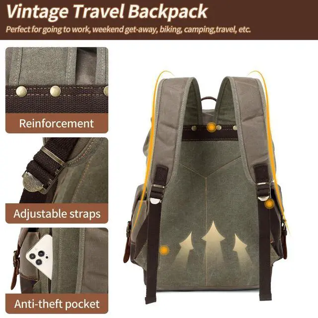 ^^ Versatile Canvas Backpack: This canvas and leather backpack can be used for various occasions: daily backpacks, international travel backpacks, single shoulder backpacks, outdoor backpacks, hiking backpacks, sports backpacks, or weekend shopping backpacks. It can meet all your travel needs.