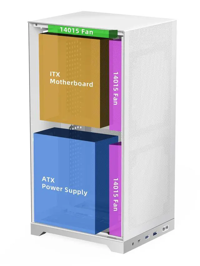 ULTRA-COMPACT VERTICAL DESIGN: Space-Saving Compact 12.1L Vertical ITX Chassis ( 7.8" x 6.65" x 14.41" /198 x 169 x 363mm) maximizes desk space while housing TRIPLE-SLOT GPUs up to 13.78" (350mm), such as RTX 4060/4080 GPU. Perfect for gamers, creators, and professionals who want desktop-grade power in a portable mini-ITX build weighs just 5.5 lbs ( 2.5 kg), 50% lighter than bulky traditional towers. ^^