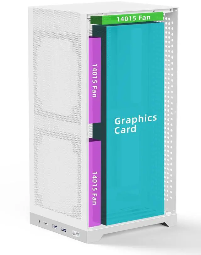 ADVANCED MESH COOLING SYSTEM: Supports up to 3 140x15mm ultra-slim fans (sold separately) with full-perforation steel mesh panels, delivering optimized side-to-top airflow for rapid GPU/CPU cooling. High-density mesh blocks dust without sacrificing airflow ideal for long gaming sessions or 3D rendering.