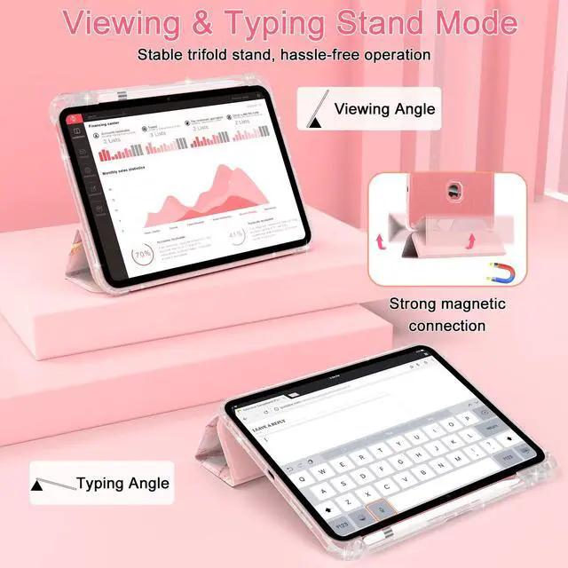 (Model Number: A3355/A3356/ A2696/A2757/A2777), DO NOT fits for any other devices. ^^ Intelligent Sleep/Wake Function Our 10th generation ipad magnetic smart csae is equipped with auto wake/sleep technology, so your iPad 10th generation will be ready whenever you are. With a powerful magnet securing the case closure, you can easily snap it on and off. ^^ Protect iPad From DropsSlim and lightweight case design adds minimal bulk while protecting your precious iPad 11th. Use the air-pillow technology edge design to achieve the strongest fall protection. Your iPad a16 against shocks, drops, and scratches. ^^ Built-in Pencil HolderPencil Holder conveniently places and easy push out your pencil via the hole in the back, Not easy to lose. grab your Apple Pencil (USB-C) or Apple Pencil 1st Gen effortlessly whenever you want, easily to carry it.