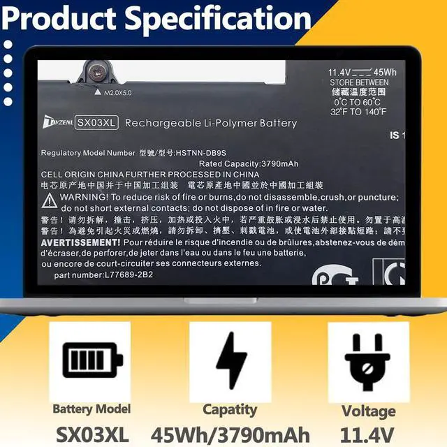 Battery Color: Black 100% brand New from Manufacturer. ^^ Compatible Modelfor Hp ProBook X360 435 G7 G8 Series. ^^ Compatible C/NSX03XL, SX03045XL, HSTNN-DB9P, HSTNN-IB9D, HSTNN-IB9I, L77689-2B1, L77689-171, L77689-172, L78125-005, 996QA176H. ^^ HIGH-PERFORMANCE, LONGER LASTINGWe have passed a series tests of short circuit, overheating, and overload protection before shipments. ALL of our battery are CE, FCC, RoHS Certified. Premium battery chip, makes a faster-charging and longer-lasting performance to meeds your daily working, learning and playing needs. ^^ Reassured After-sales We promise 30-Day Refund & 1-Year Warranty. For any battery questions, just feel free to contact us for help via the order or click on"TAVZENL", then you can see "Ask a question" on the page. We will glad to help you solve any battery problems within 24 hours.
