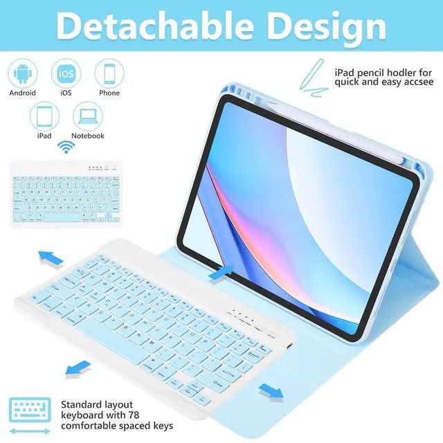 Magnetically Detachable Keyboard: For ipad Pro 11 inch case with keyboard comes with Detachable magnetic keyboard can transform your tablet into a convenient little notebook laptop easily. A laptop-like keyboard with a full row of iPadOS shortcuts are ergonomic and comfortable. The keyboard is separated from the case, when you don t need to use the keyboard, you can remove it and make it come back for Pro 11 ^^