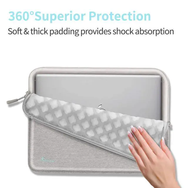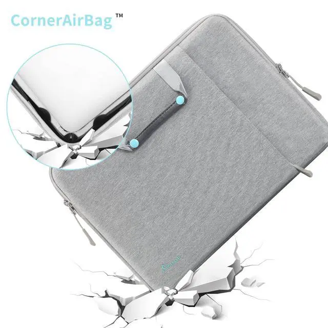 CornerAirBag PATENT DESIGNLaptop case protective CornerAirBag patent design at the bottom of the case and 360 protective soft padding around inside protect your laptop from bumps in accident, just like the Car Airbag ^^ YKK ZIPPERSince the durable YKK zippers can be opened and closed smoothly, wear-resistant, Laptop cover is fashionable and useful for its slim lightweight design as well as reliable well-made zippers, and wont snag or catch your laptop upon opening or closing. ^^ HIGH QUALITY MATERIALMade with high-quality waterproof polyester fiber from water and scratches, this laptop sleeve can provide more safety and protection for your belongings on rainy days.