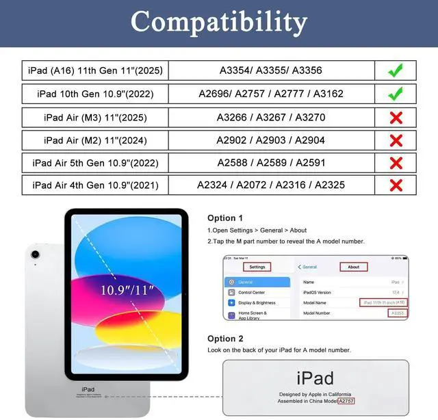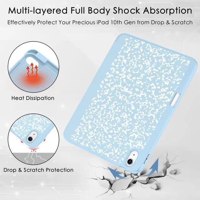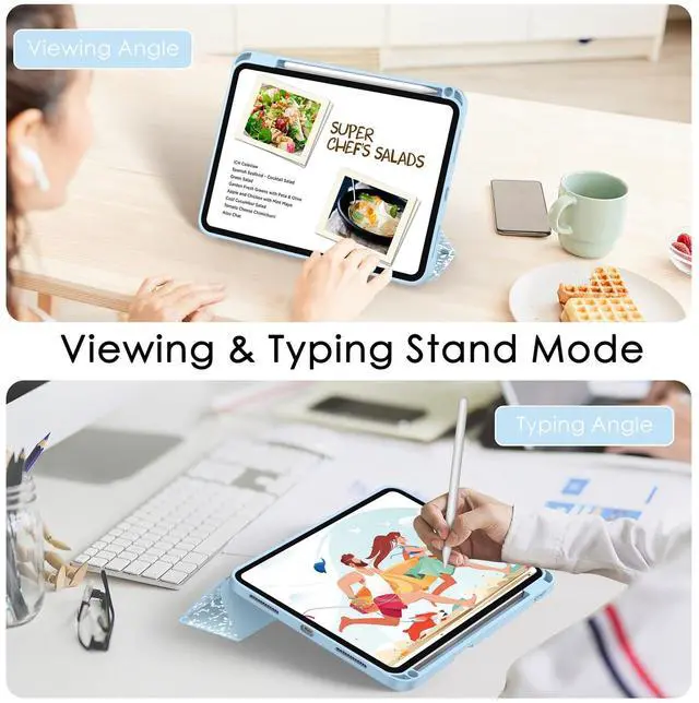 (Note: Apple Pencil is NOT included) ^^ [Designed for Auto Sleep/Wake] - Magnetic smart cover supports auto wake & sleep function. Magnet secures the iPad (A16) 11th/10th gen case closure, easy snap on and off, to save your time ^^ [Designed for Stable Stand] - You can easily prop up the ipad with dual standing positions for enjoy the most comfortable keyboard-typing and movie-viewing. Free your hands to deal other things