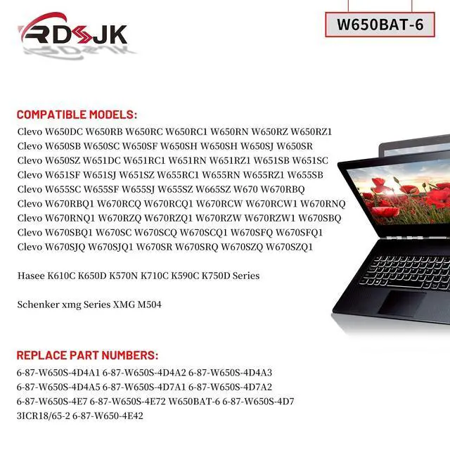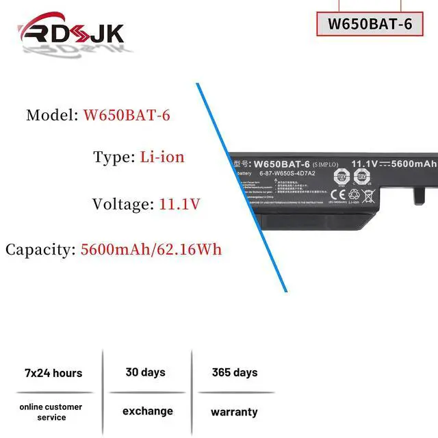 Part Numbers: 6-87-W650S-4D4A5, 6-87-W650S-4D4A2, 6-87-W650S-4D7A2, 6-87-W650S-4E7, 6-87-W650S-4E72, W650BAT-6Note: Please check if this battery is compatible with your computer before purchasing. If you are not sure for that, please contact us!